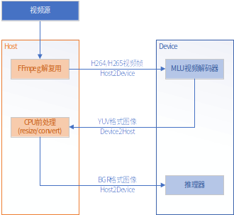 解码的方式有两种,与前处理操作关系紧密。一种是CPU做前处理,另一种是在MLU上做前处理。